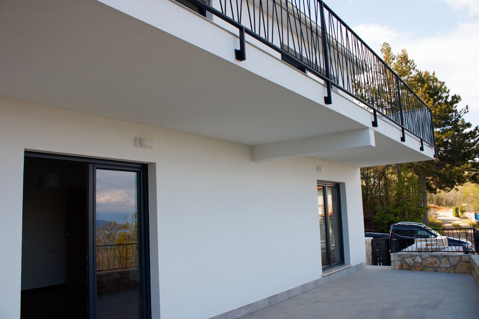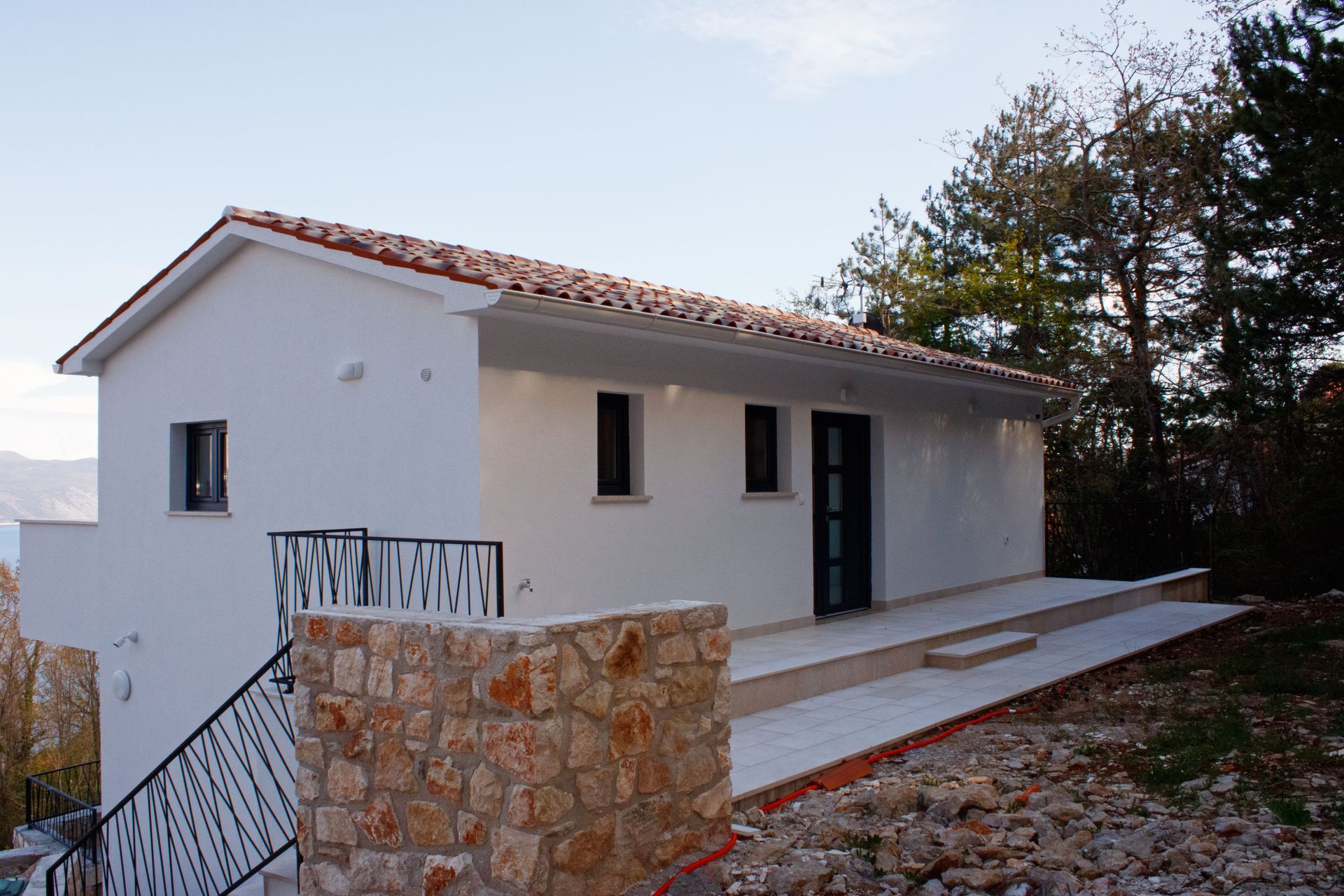 Dieses feine Haus wurde in einem klassischem Stil 2022/23 aus massivem Stein neu errichtet. Sowohl von der Terrasse und dem Balkon aus haben Sie eine unbeschreibliche Sicht auf die Adria und die Insel Cres. Das Haus ist mit hochwertigen Materialien, Bodenbelägen und Türen ausgestattet; die Treppen bestehen aus Echtholz. Die Fliesen sind edel und zeitlos. Der Wohnraum mit integrierter Küche (so ist die Planung) sowie die beiden Schlafzimmer sind geräumig und lichtdurchflutet. Neben dem Gebäude befindet sich eine Freifläche, auf der man einen Pool errichten könnte.