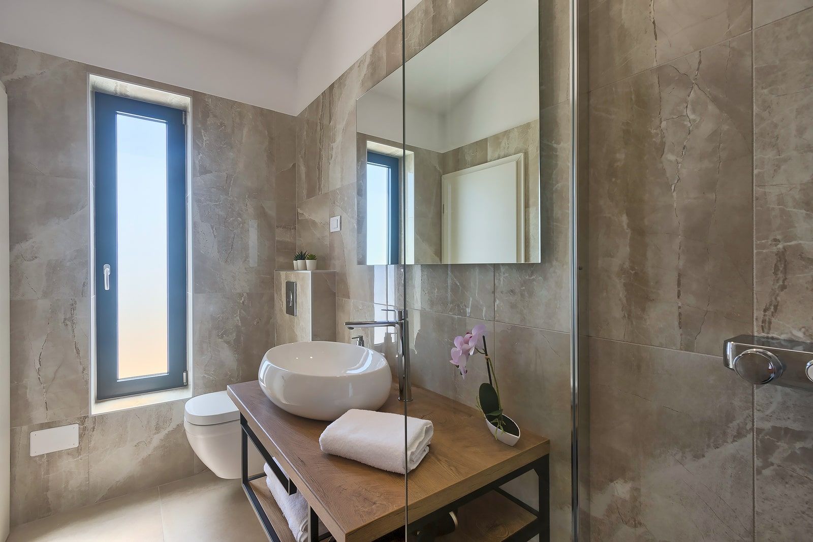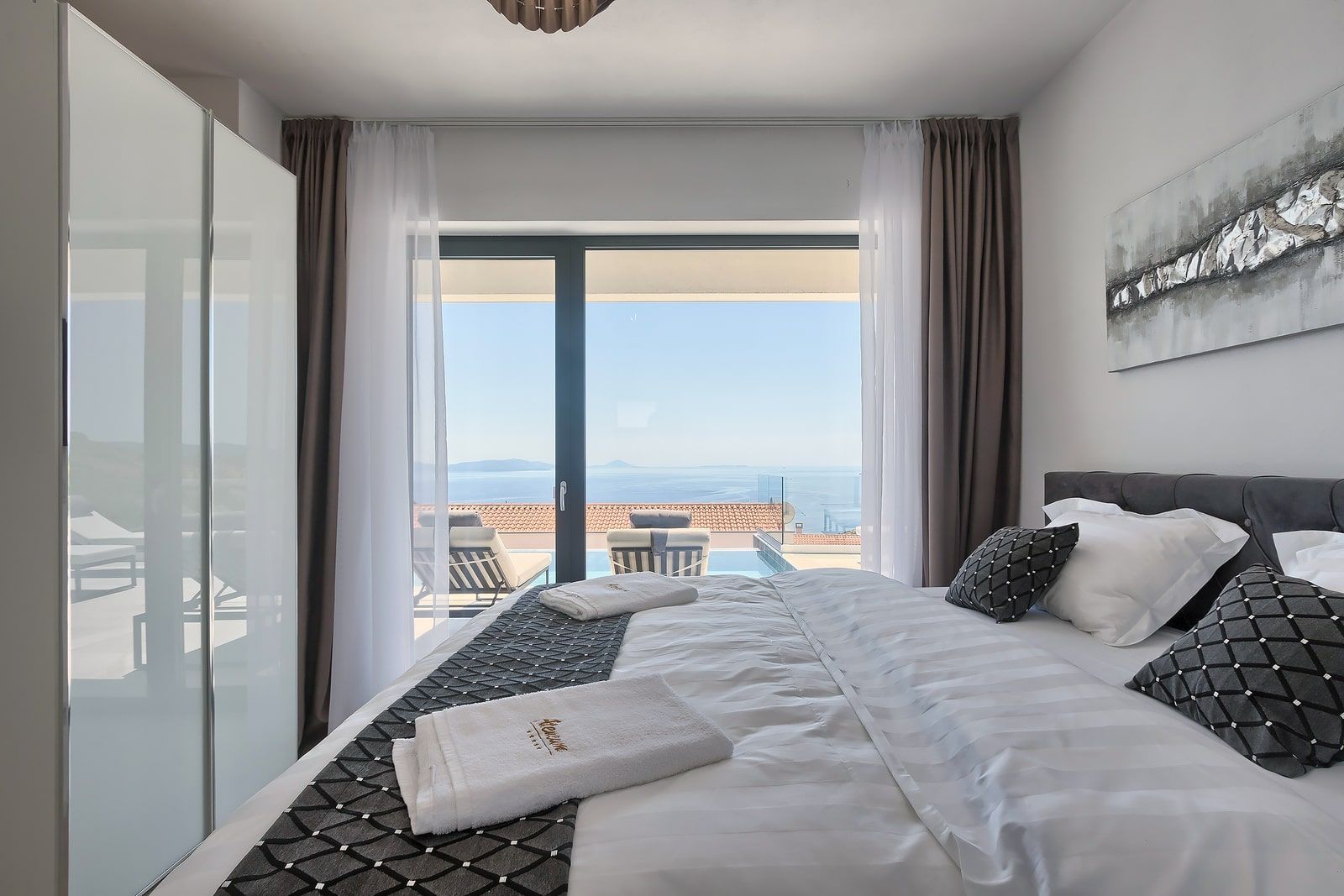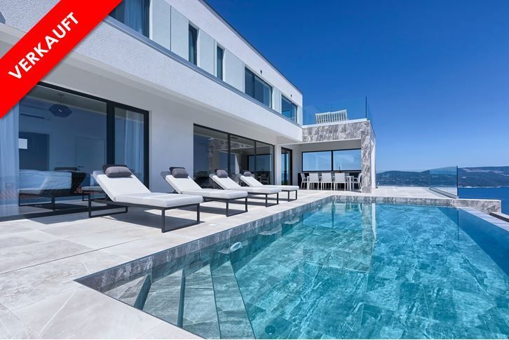 Die Bilder sprechen für sich. Diese traumhafte Villa liegt ca. 800m vom Meer entfernt in einer Hochebene. Nur wenige Häuser befinden sich in der Nachbarschaft und liegen überwiegend unterhalb dieser Immobilie. Hier wohnen Sie ruhig und exklusive. Die Villa lässt keine Wünsche offen. Jedes der 4 Schlafzimmer hat ein eigenes Bad und die Fenster sind alle zur Adria ausgerichtet. Der Ausblick der gesamten Immobilie ist zauberhaft. Die gesamte Immobilie ist lichtdurchflutet. Neben dem großen Pool befindet sich im Außenbereich ein Jacuzzi. Die Terrasse ist teilweise überdacht, dort befindet sich eine Außenküche mit einem großzügigen Essbereich. Sie kochen und speisen mit Blick auf die Adria. Der Blick ist unverbaubar.