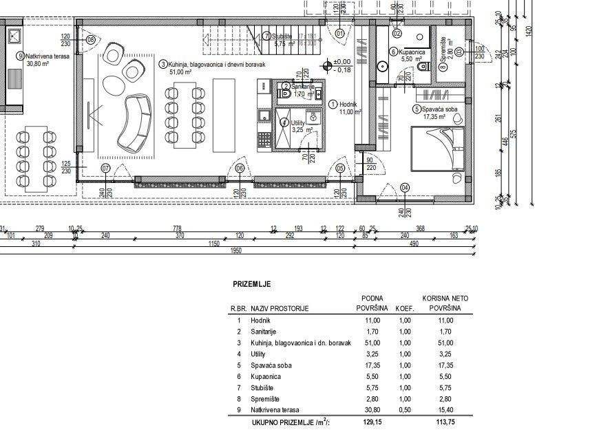 Modernes zweistöckiges Haus mit Pool in einem schönen Ort mit super Infrastruktur. Die gesamte Nettonutzfläche des Hauses beträgt 200 m2 und es befindet sich auf einem 1263 m² großen Grundstück. Das Erdgeschoss besteht aus Flur, Toilette, einem geräumigen Wohnzimmer mit Küche und Essbereich, einem Schlafzimmer mit Bad, Abstellraum und zwei überdachten Terrassen. Im ersten Stock befinden sich drei Schlafzimmer, jedes mit eigenem Bad, Flur und Terrasse. Im Garten wird es einen 32 qm großen Pool geben.
